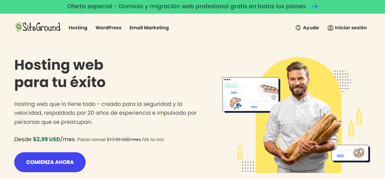 Con su excelente rendimiento y soporte al cliente de primera clase,  SiteGround es una opción confiable para aquellos que priorizan la seguridad y el servicio al cliente.